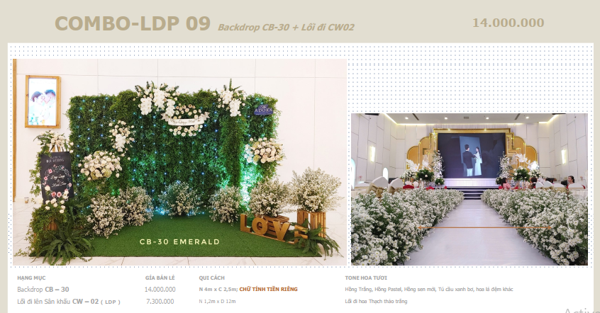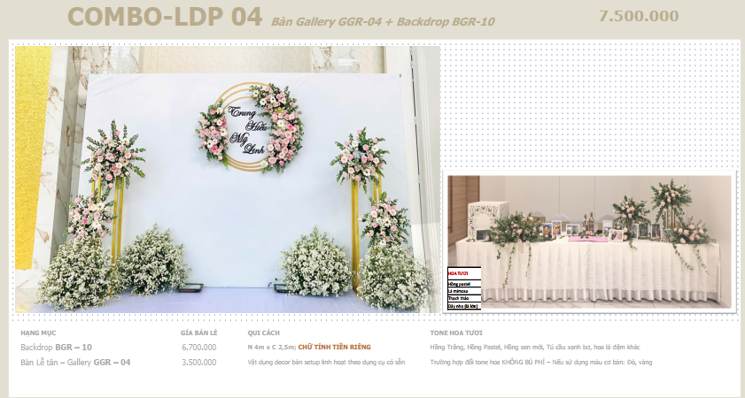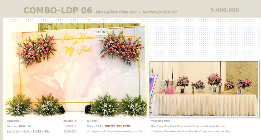 COMBO TRANG TRÍ TRỌN GÓI BACKDROP CHỤP ẢNH - BÀN GALLERY - LỐI ĐI TIỆC CƯỚI TẠI THE ADORA