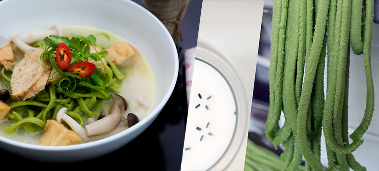 Món ăn này không chỉ có giá trị dinh dưỡng cao mà còn hấp dẫn bởi màu sắc đẹp mắt của sợi mì. Để có những sợi mì xanh, người bán nhào bột mì với nước ép rau cải trước khi kéo. Món mì rau cải này được coi là món ăn giàu dưỡng chất và có lợi cho những người bị cholesterol cao hay bị huyết áp cao.