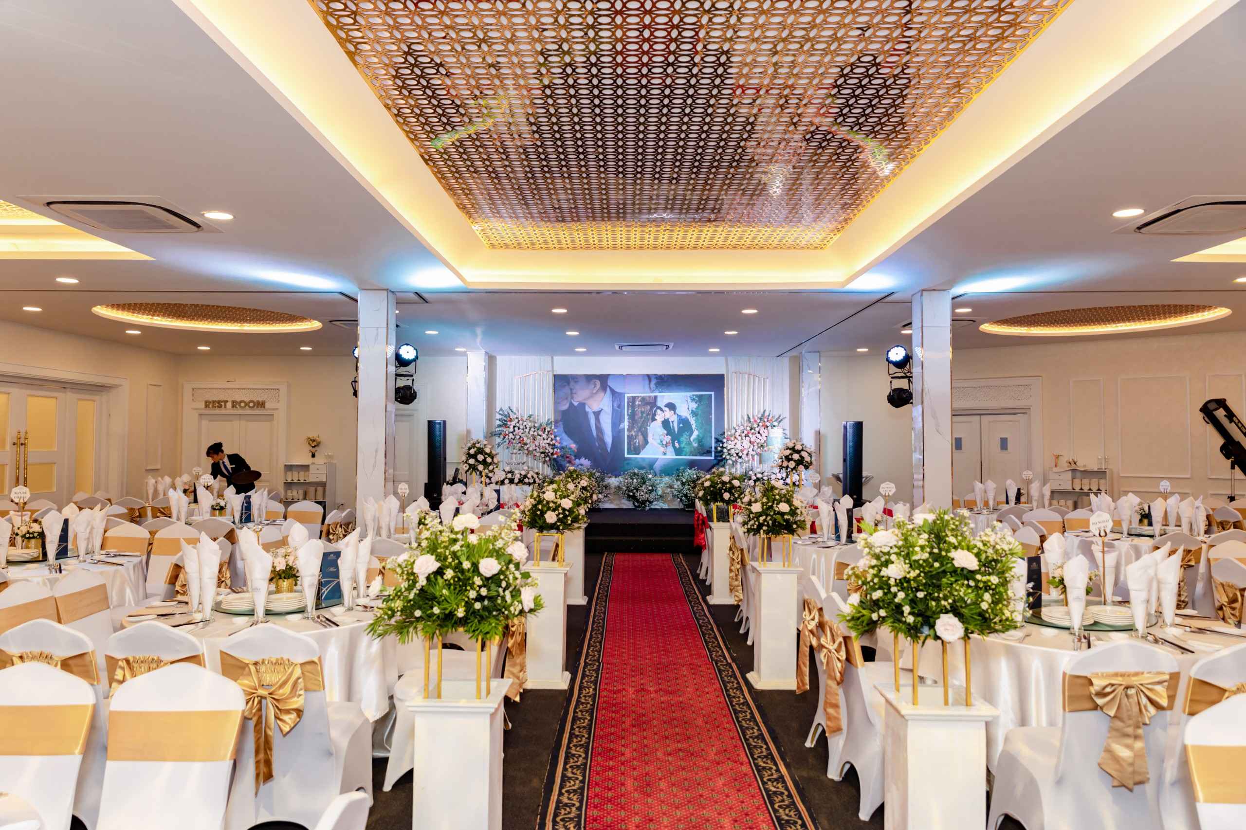 Để tiết kiệm thời gian và giảm áp lực chuẩn bị, hãy ưu tiên chọn những địa điểm có sẵn các dịch vụ đi kèm như âm thanh, ánh sáng, trang trí theo concept mong muốn, thực đơn đãi tiệc và đội ngũ hỗ trợ chuyên nghiệp.