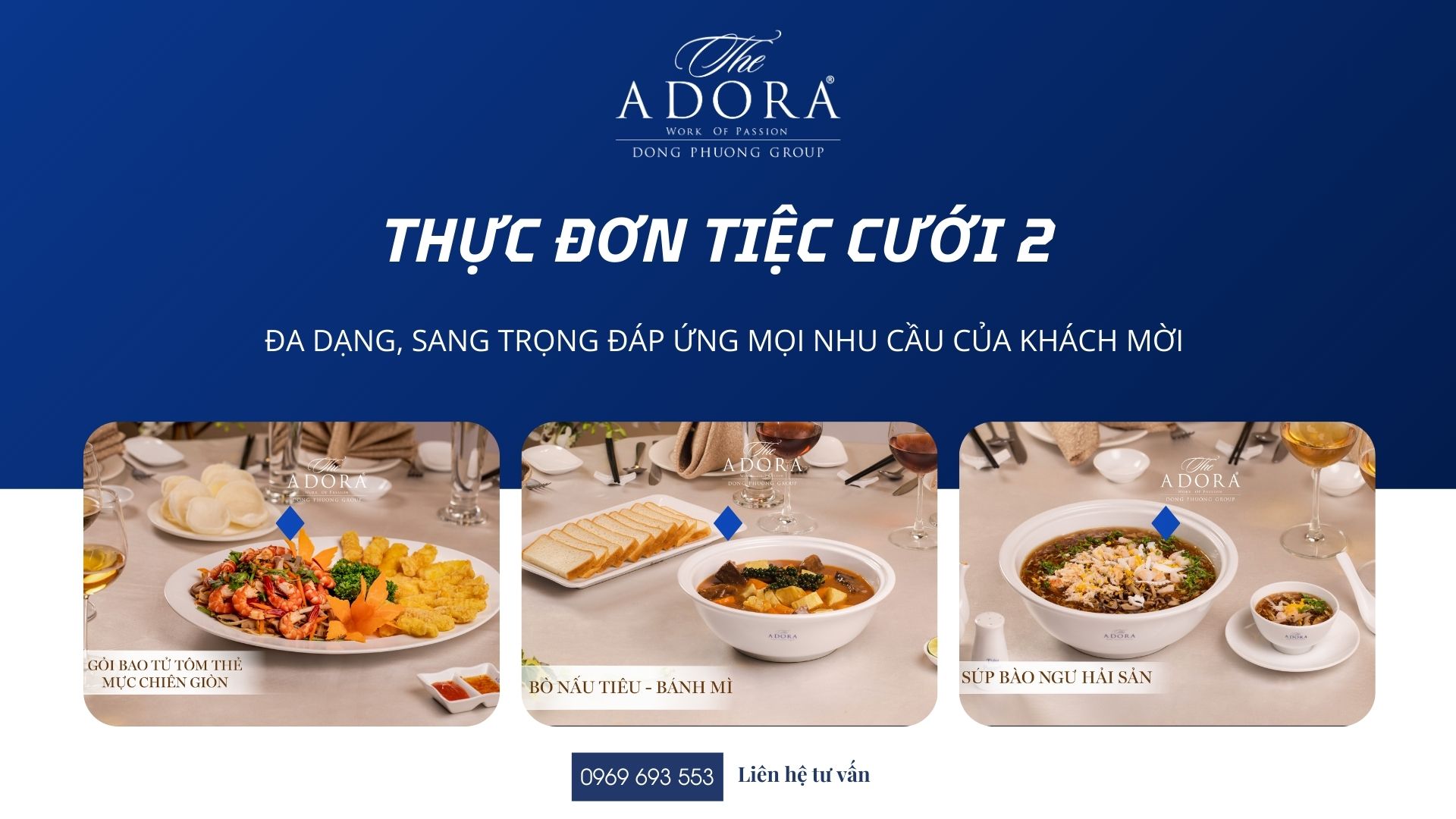 (Lưu ý: Menu tiệc cưới sẽ tùy thuộc vào các địa điểm, chi nhánh của từng nhà hàng, vui lòng gọi 0969.693.553 để được tư vấn miễn phí)