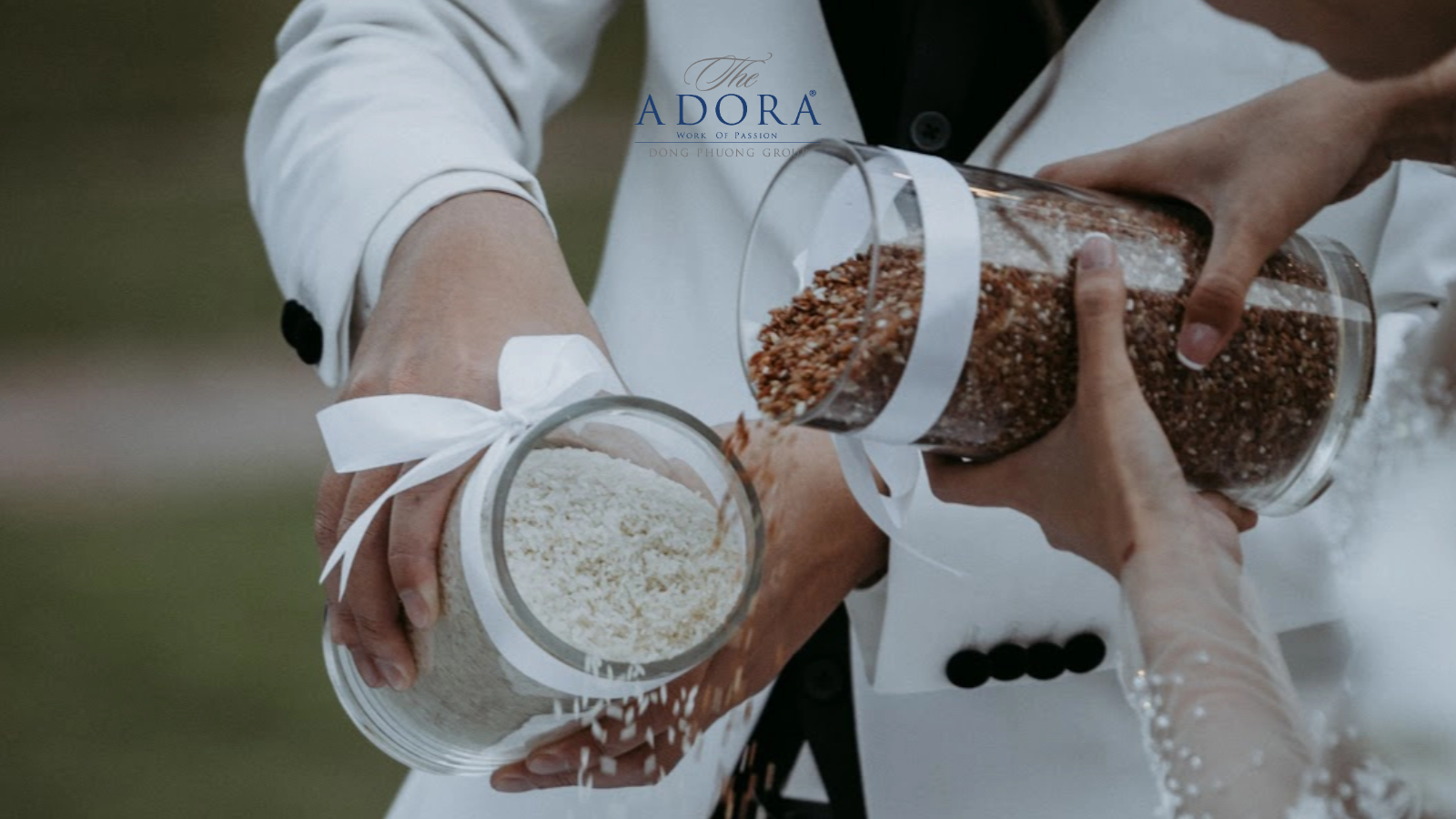 Lấy cảm hứng từ văn hóa truyền thống Việt Nam, nghi thức này khơi gợi hình ảnh cặp đôi cùng góp gạo vào một nồi cơm chung. Đây là biểu tượng cho sự đồng hành và chia sẻ trong mọi thử thách của cuộc sống. Với ý nghĩa hạnh phúc được xây dựng từ những điều giản dị, nghi thức này có thể trở nên đặc biệt hơn khi sử dụng gạo màu và tổ chức trong không gian âm nhạc dân gian, tạo cảm giác gần gũi và ý nghĩa.