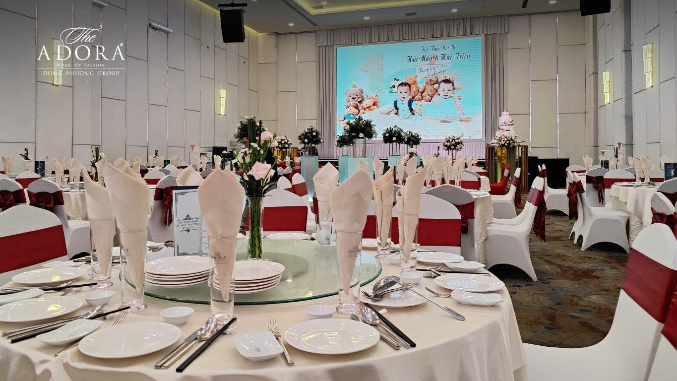 The ADORA khẳng định vị thế địa điểm tổ chức cho tiệc thôi nôi & sinh nhật bởi khả năng biến hóa không gian và sự cam kết về chất lượng dịch vụ:
