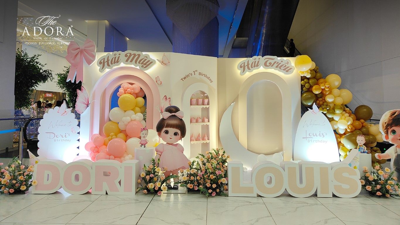 - Thiên đường Concept Cá nhân hóa: Tại The ADORA, tiệc Thôi Nôi không bao giờ lặp lại. Đội ngũ trang trí chuyên nghiệp luôn sẵn sàng tạo ra các concept độc đáo, từ khu vườn cổ tích lãng mạn, thế giới hoạt hình sống động, đến phong cách hiện đại tối giản. Sự đầu tư vào backdrop, chi tiết trang trí và hiệu ứng ánh sáng đảm bảo mỗi góc nhỏ đều trở thành studio ảnh check-in lung linh, đẹp hơn cả mong đợi của ba mẹ.