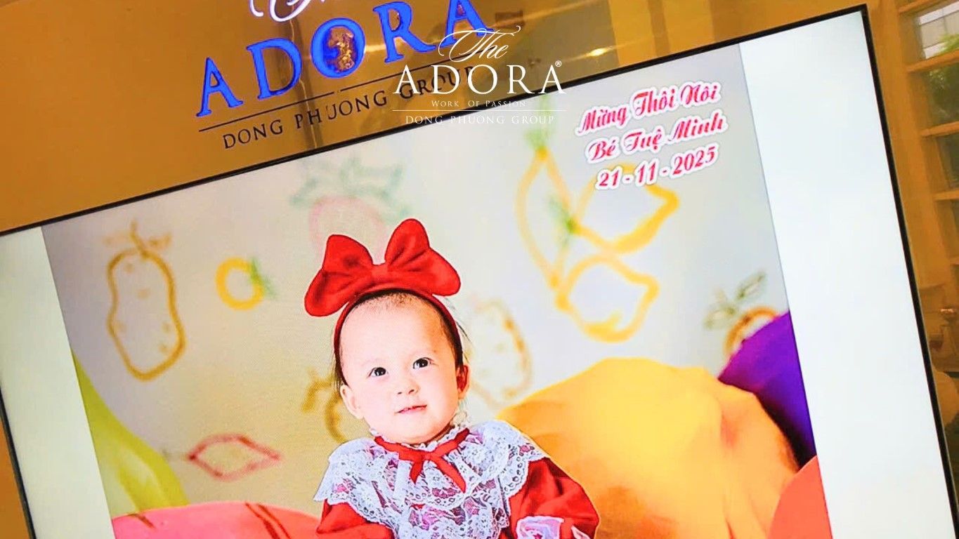 - Hỗ trợ từ A đến Z: Mọi khâu từ lên kịch bản, thiết kế thiệp, trang trí, quản lý sự kiện, đến hỗ trợ nghi thức truyền thống đều được The ADORA chu toàn. Ba mẹ chỉ cần tập trung tận hưởng khoảnh khắc con yêu thổi nến, cắt bánh và nhận lời chúc phúc.