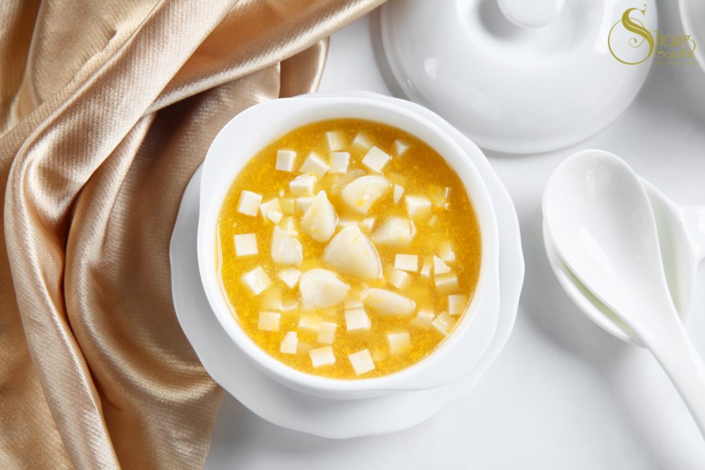 Để giữ lại độ tươi ngon và chất dinh dưỡng có trong sò điệp, chuyên gia dinh dưỡng khuyên bạn chỉ nên chọn những món ăn nhẹ nhàng: súp, canh, hấp,… Vì vậy hãy tới Shang ngay hôm nay để thưởng thức món Sup sò điệp gạch cua, Sò điệp Nhật xào rau mùa, Sò điệp Nhật xào xốt X.Q….