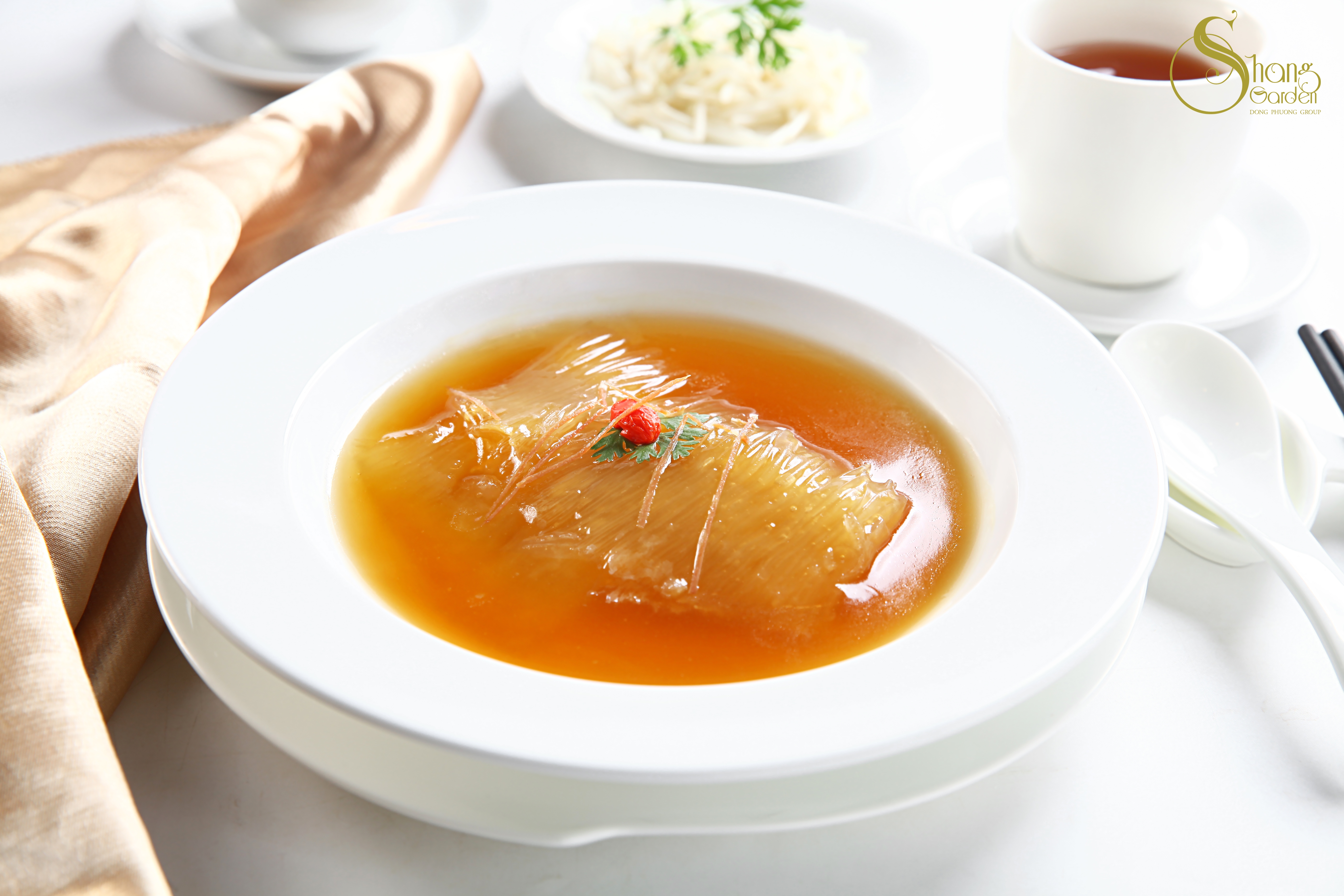 Đên Shang Garden, bạn sẽ có cơ hội được thưởng thức các mới lạ và ngon tuyệt hảo được chế biến từ vi cá như: Vi cá hồng xíu, Vi cá tiềm gà, Vi cá xào khô với thịt cua và sup thượng hạng, Sup vi cá gạch cua, Sup vi cá thịt cua…