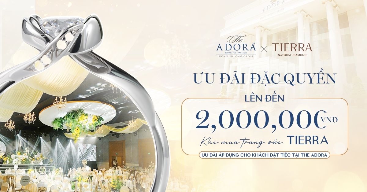 Mùa cưới 2025, The ADORA kết hợp cùng Tierra Diamond mang đến chuỗi ưu đãi độc quyền dành riêng cho các cặp đôi đang chuẩn bị bước vào hành trình hạnh phúc. Đây không chỉ là chương trình khuyến mãi thông thường, mà là lời chúc phúc gửi đến mỗi đôi uyên ương – một khởi đầu trọn vẹn, tinh tế và đáng nhớ.